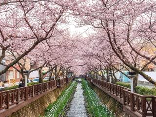 Located about 20 miles west of Busan, Jinhae is a quiet coastal town known for one thing: cherry blossoms. Each spring, the city holds the largest cherry blossom festival in South Korea, with hundreds of thousands of pink trees lining streets, railways, and streams.
